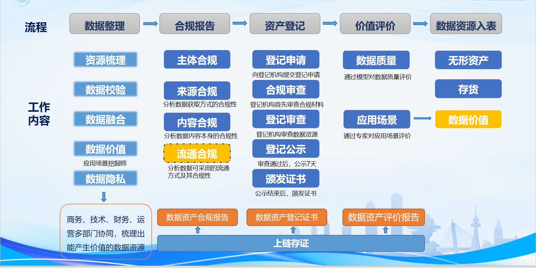 此次入表的“企业信息核验数据集”产品,经过数据梳理、项目立项、数据治理、项目验收、合规审查、登记、评价、入表八个关键环节,实现了各环节有制度可依、有标准可循。